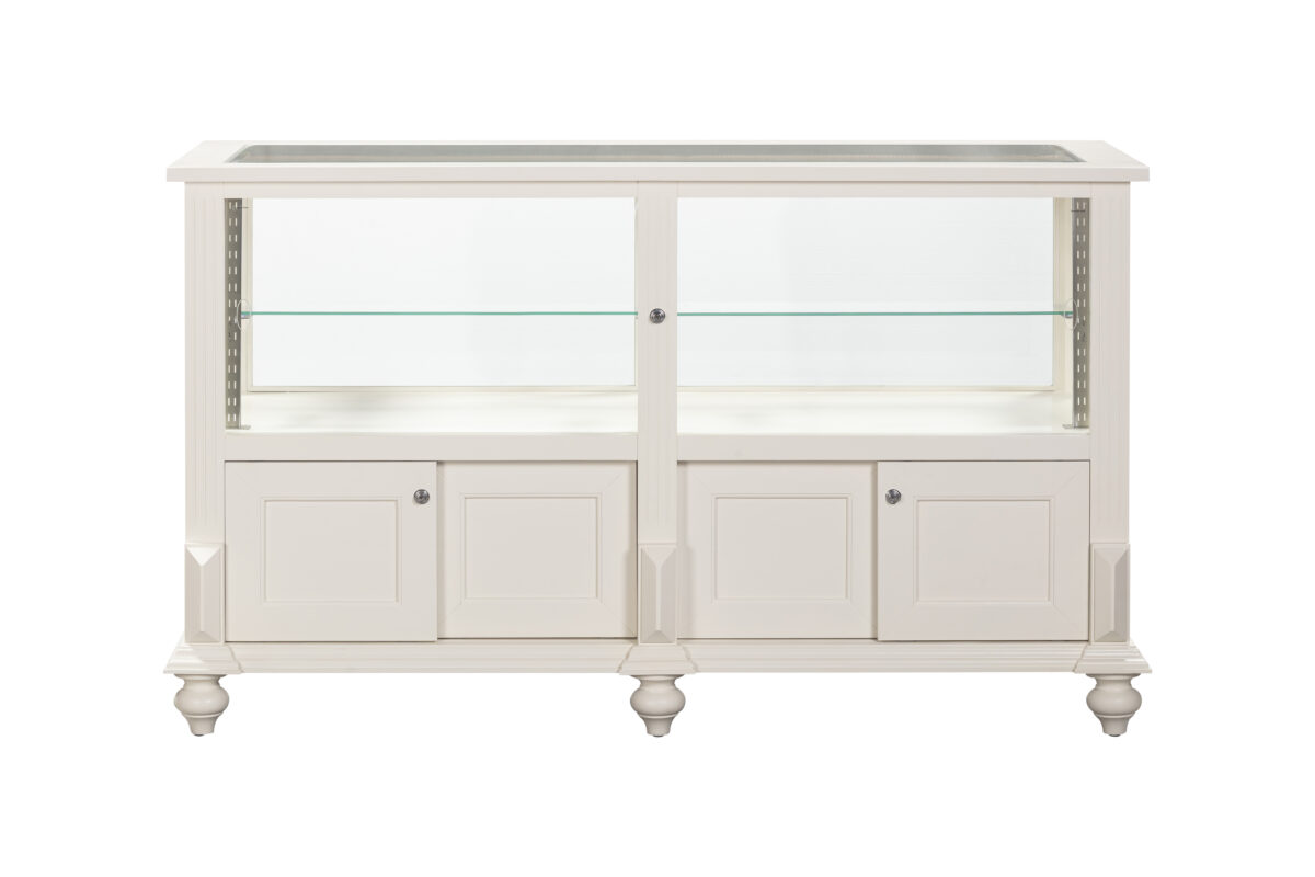 Check out the amazing selection of display cases from D.B. Imports! Our offers feature a variety of options to choose from, so you can find the perfect case for any room in your retail space or venue. Whether you’re looking for something modern and sleek, or a more traditional look, we have it all. Our display cases come in white or distressed pine, and feature wrap around tempered glass & top with locking doors on one side and LED lights that provide a new way to look at jewelry displays.